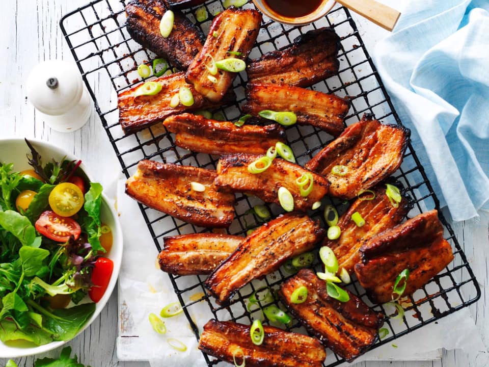 Tortilla with marinated pork belly and sweet potato, tomato salsa, quacamole, creme fraiche, rice.or tortilla chips